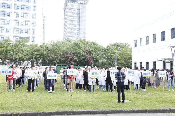 下午15:30,消防警报拉响,本次消防演习正式开始。总指挥下达启动紧急疏散预案命令,消控室通过消防广播发出紧急疏散指示。各车间、办公楼停止作业,疏散员迅速到达指定位置引导员工撤离。撤离过程中大家遵守火灾自卫法则,全程低头弯腰,降低身体重心,捂住口鼻,有秩序、安全地撤离“火灾现场”。警戒人员在各路口引导疏散人员有序到达疏散点。医疗救护人员携带紧急药箱、担架随时待命。到达安全区域后,各部门负责人清点人数,并汇报给总指挥,全员到齐后,本次演习圆满结束。